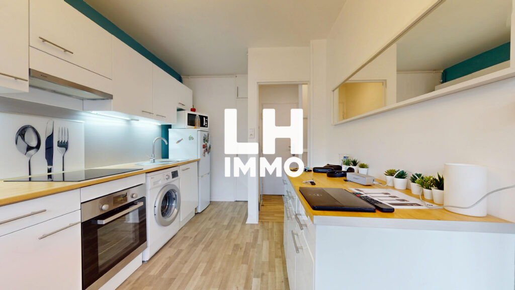 Cet appartement lumineux exposé Sud comprend une entrée avec placards, une cuisine aménagée, un séjour salon, une chambre, une salle de douche