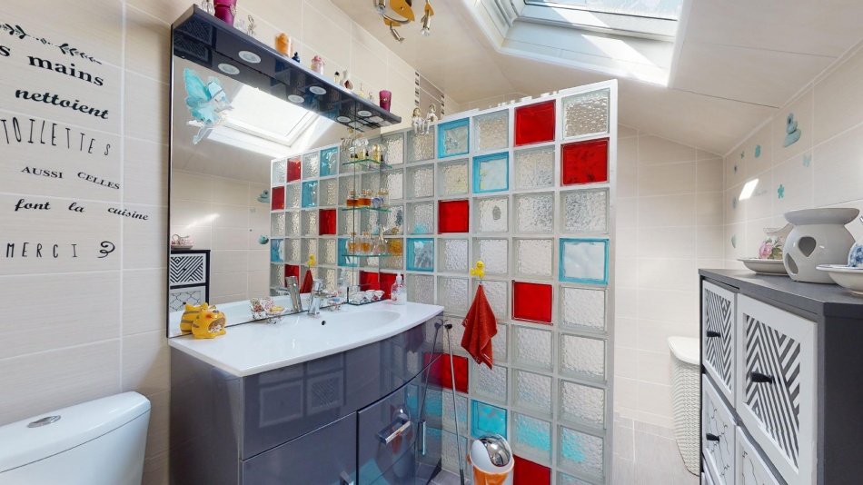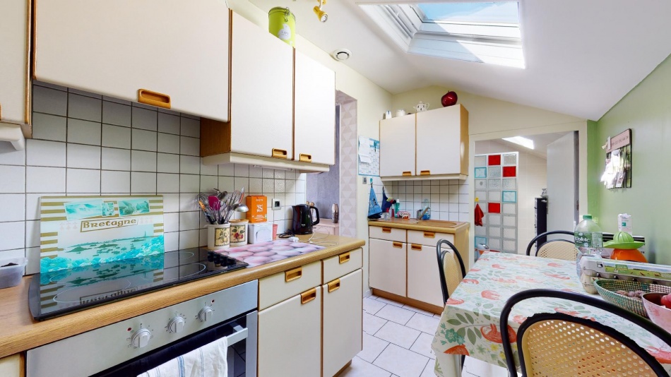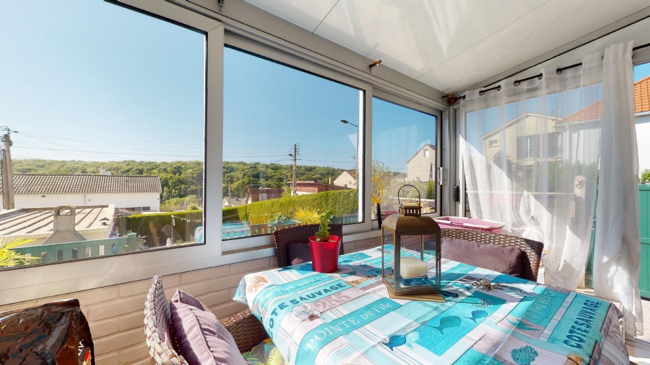Une véranda de 9,2 m² et un garage de 27,6 m² complètent l’ensemble. Les pièces principales bénéficient d’une belle hauteur sous plafond d’environ 2,70 m.